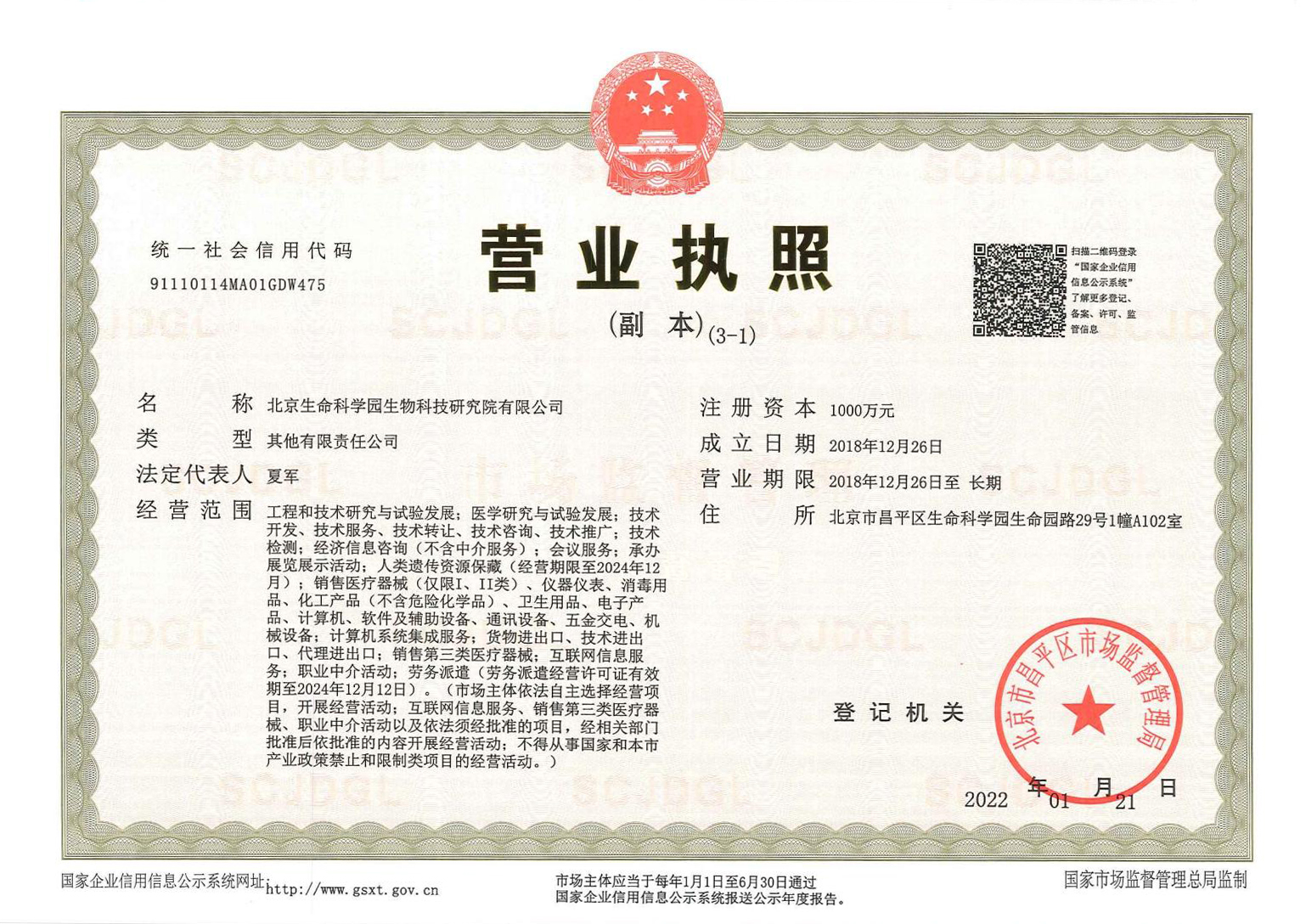 北京生命科學園生物科技研究院(以下簡稱“北京生物樣本資源庫”)(Biobank of Life Science Park,簡寫“BoLSP”)是一家由北京市科委和中關村生命科學園共同支持設立的第三方生物樣本庫公共服務平臺,秉承北京重大疾病臨床數(shù)據(jù)和樣本資源庫(以下簡稱“北京庫”)(Beijing Biobank of Clinical Resources,BBCR)十余年的發(fā)展成果,聚合眾多臨床樣本專家的專業(yè)共識,致力于在生命科學、生物醫(yī)藥研究領域發(fā)揮銜接樣本資源持有者與研究者的橋梁作用,解決生物樣本資源開發(fā)上下游信息不對稱、資源共享困難等問題。研究院在北京中關村生命科學園昌平園區(qū)建立了2000㎡生物樣本庫,最大存儲規(guī)模達1000萬份。研究院遵循CNAS-CL10:2020《生物樣本庫質(zhì)量和能力認可準則》,同時結合北京庫過去十年的工作經(jīng)驗與教訓,建立了一套完善的生物樣本保藏質(zhì)量管理體系,從人、機、料、法、環(huán)、控多個角度,實現(xiàn)生物樣本保藏過程的全面質(zhì)量控制,先后獲得國家科技部頒發(fā)的人類遺傳資源保藏行政許可證書和中國合格評定國家認可委員會(China National Accreditation Service for Conformity Assessment,CNAS)頒發(fā)的“CNAS認可證書”。